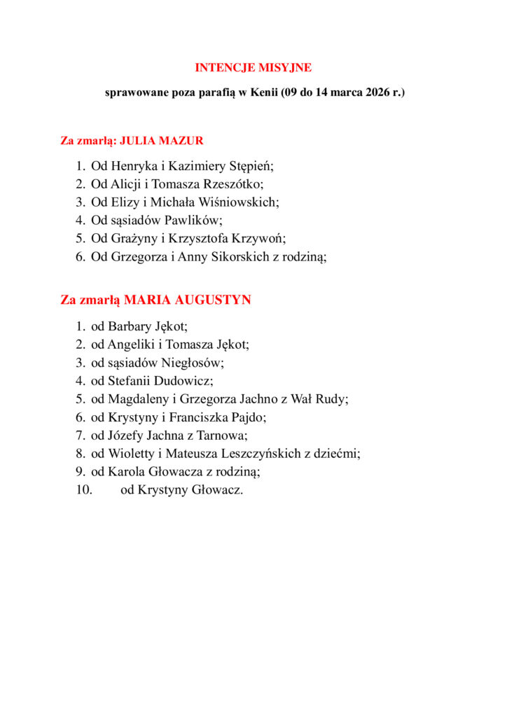 Intencje misyjne sprawowane w Kenii 09-14.03.2026 r.