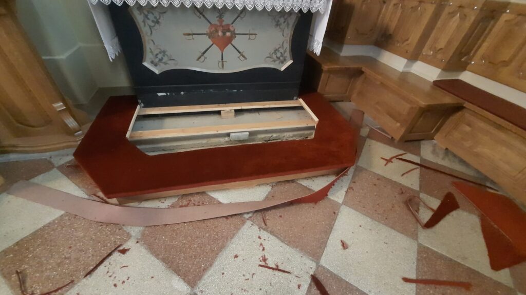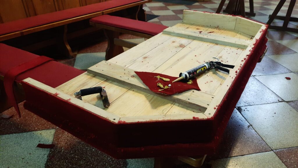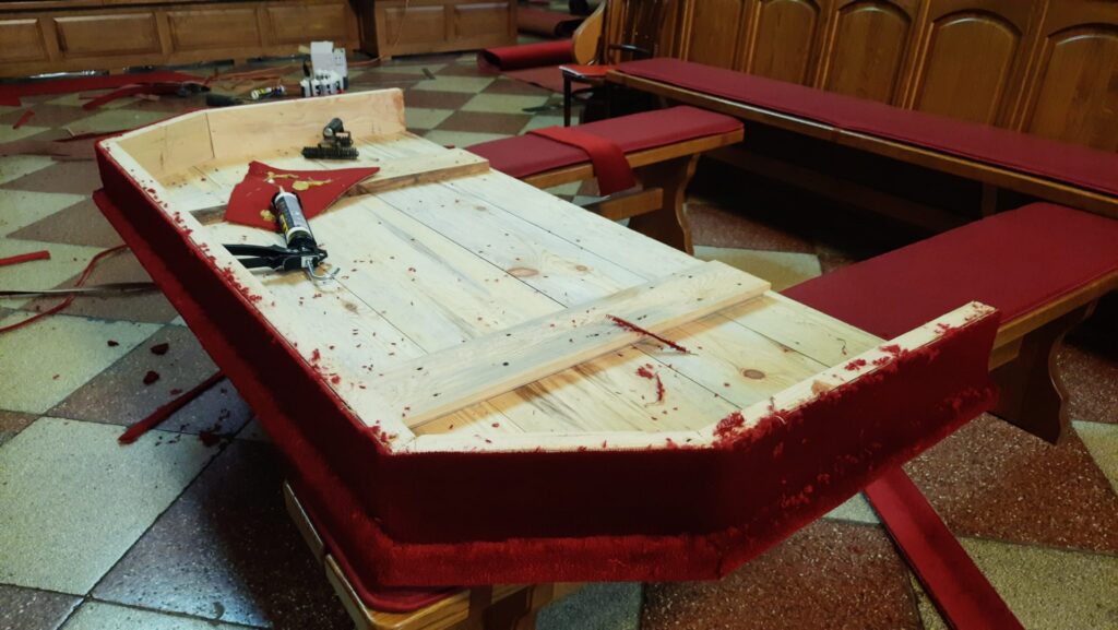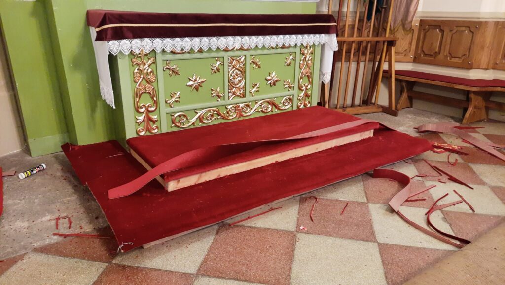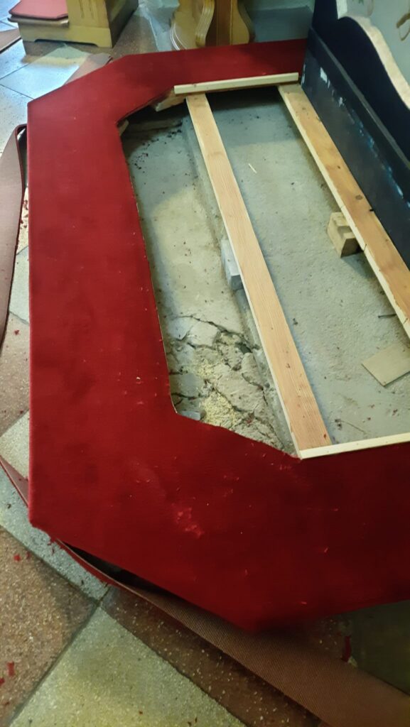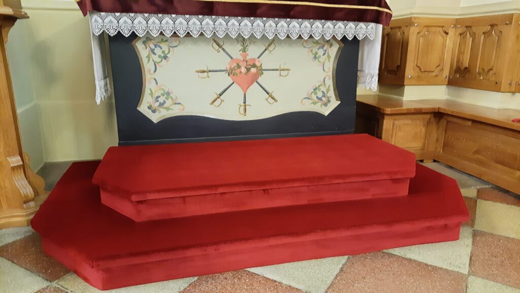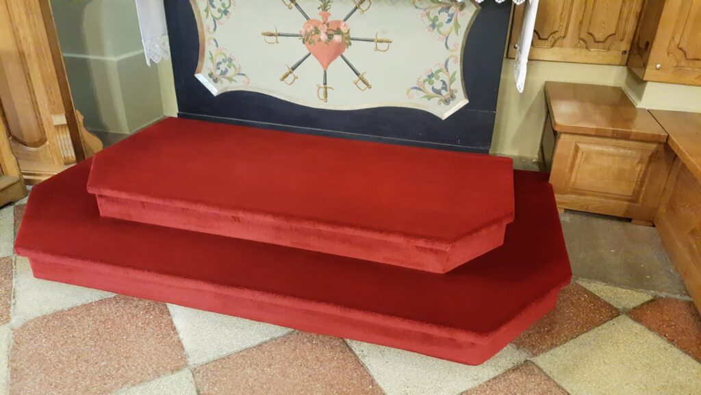 W piątek zakończyliśmy prace przy stopniach przy czterech bocznych ołtarzach. Stopnie zostały wyłożone nową wykładziną w kolorze bordo, która pięknie współgra z kolorystyką wnętrza naszej świątyni. Dziękujemy wszystkim, którzy wspierają naszą świątynię zarówno ofiarami materialnymi, jak i duchowymi. Dzięki Wam nasza świątynia staje się coraz godniejszym Domem Bożym. Niech Pan Bóg Wam wszystkim hojnie wynagrodzi. 😇🙏