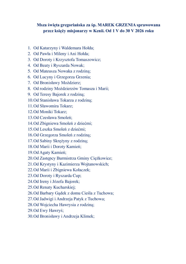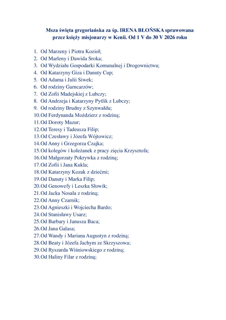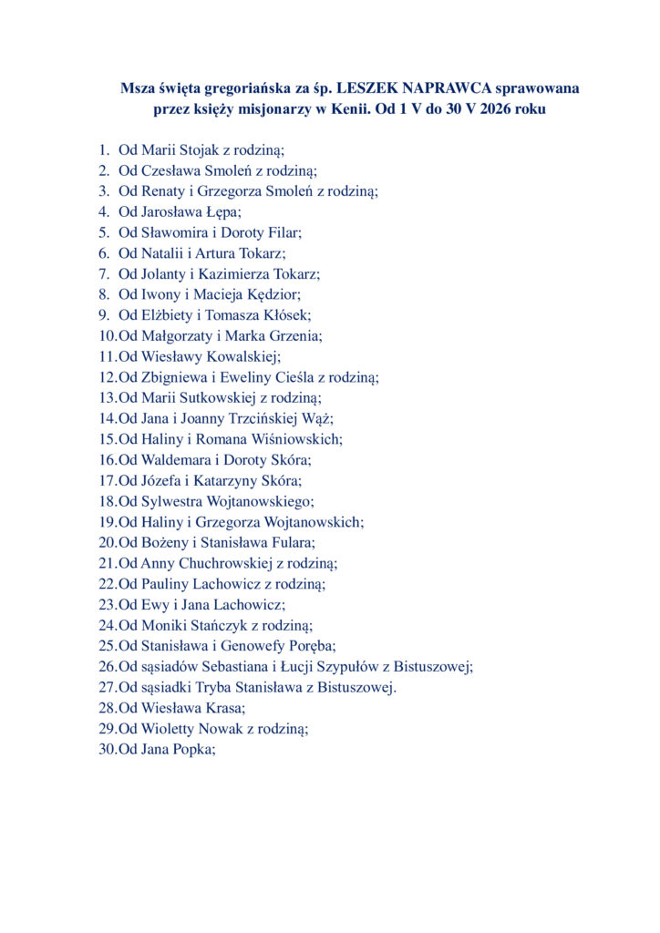 Msze Święte Gregoriańskie sprawowane w Kenii 01-30.05.2026 r.